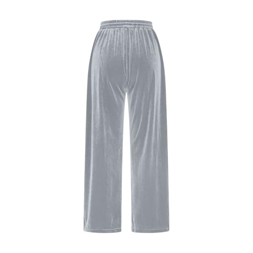 HOT ! Women's Velvet Pants Drawstring Waist Wide Leg Casual Lounge Pant Soft Straight-Leg High Waist Velour Sweatpants with Pockets