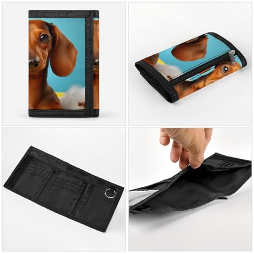 Dachshund Dog Trifold Wallet for Men - Money Clip Slim Wallets with Multiple Card Slots Minimalist Small Front Pocket Wallet for Everyday Carry 3