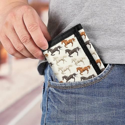 • Design: Featuring a versatile trifold design, this men's wallet includes a front zipper compartment for quick access to essentials. Inside, there are spaces dedicated for ID cards, cards, and changes. The inclusion of a keychain allows you to carry your keys effortlessly, making it a Retro Horse Print simple wallet for men that's all about practicality
