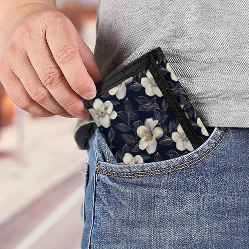 • Size: Our Elegant White Flowers Print men wallet has a compact dimension of 5x3.3x0.2 inches, striking the perfect balance between utility and convenience. This small wallet for men is designed to fit comfortably in your pocket, providing easy access on-the-go without the bulk