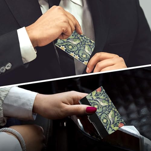 KLL Willian Morris Style; Birds Ultra-Thin Small Business Card Holder with Leather & Stainless Steel Card Organizer for Business Meeting Use tarjetero para Hombre 6