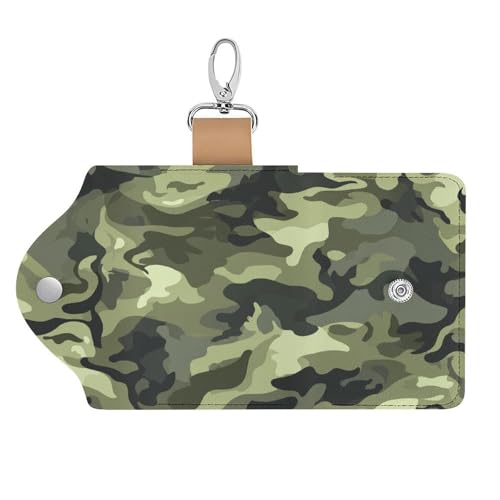 Dark Green Camouflage Pattern Key Holder Bag PU Leather ID Card Holder Keychains Case Cover for Men Women 6