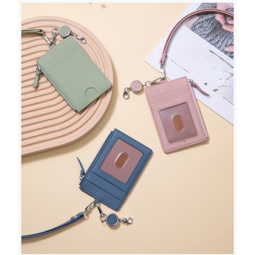 Genuine Leather Neck Wallet ID Holder Credit Card Wallet With Zipper Coins Pocket 6