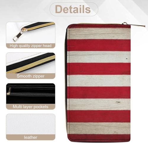 Printed Leather Wallet for Men Women, Portable Baseball Rustic Wooden American Flag Wallets with Large Capacity Multiple Card Slots 7