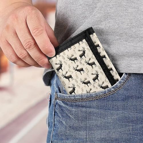 • Design: Featuring a versatile trifold design, this men's wallet includes a front zipper compartment for quick access to essentials. Inside, there are spaces dedicated for ID cards, cards, and changes. The inclusion of a keychain allows you to carry your keys effortlessly, making it a Elk Plant Silhouette Print simple wallet for men that's all about practicality