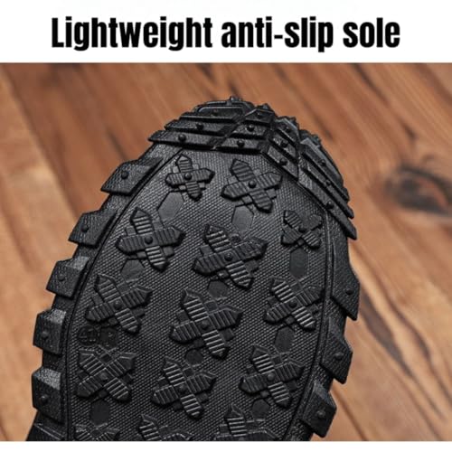 • 【All-Terrain Traction Tread】Engineered with a multi-directional anti-slip texture, these men's orthopedic work boots feature a rugged rubber outsole with deep treads and high-traction grip. Whether navigating rugged terrains, wet surfaces, or rocky paths, the superior non-slip and wear-resistant design ensures outstanding stability, keeping you safe and steady on your feet.