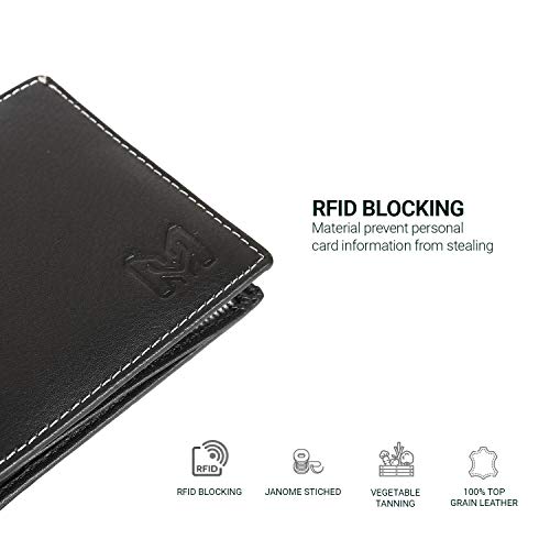 • DETAILED FEATURES: Montosu has included a discreet compartment for those few coins/tokens that need to be tucked securely away instead of jingling loosely in your pocket. It is meticulously lined with the contrasting black and white fabric and secured with a zipper that has an easy to access, sleek, silver metal pull. Additionally, a high-density, tear-resistant lining brings an element of surprise when the wallet is unfolded, revealing an elegance that surpasses most wallets.