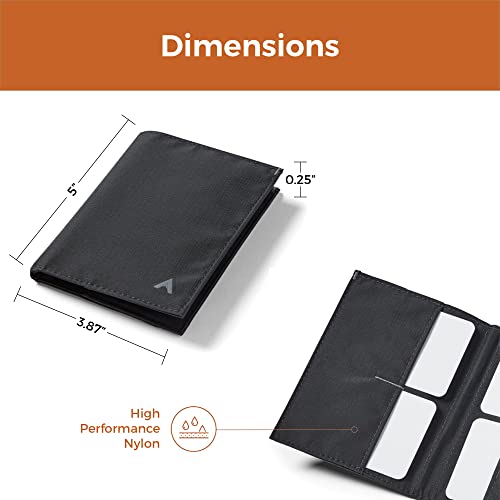 • DURABLE & WATER RESISTANT: Made with high-performance nylon with a Velcro coin pocket. This slim wallet features a rip-stop nylon that is tough and refined. Built to withstand the elements. It's easy to clean and water resistant. Measures 0.25" x 5" x 3.87", Weight 1 ounce.