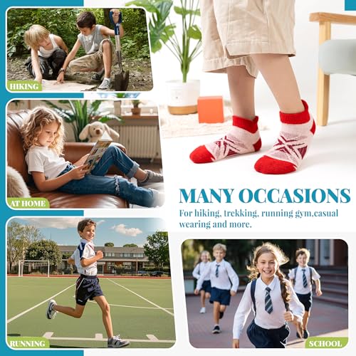 Velice Kids Merino Wool Ankle Hiking Running Socks Girls Boys Teens Athletic Warm Thick Cushion No Show Socks 6 Pairs 4