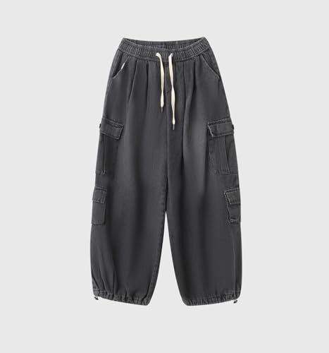 chouyatou Men's Wide Leg Baggy Denim Pants Drawstring Elastic Waist Y2k Street Cargo Jeans with Pockets 5