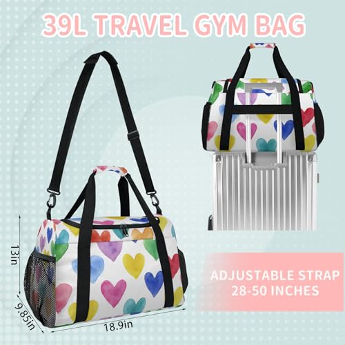Love Watercolor Colorful Travel Duffel Bag Weekender Overnight Bags for Women Men Foldable Waterproof Tote Bag with Trolley Sleeve 7