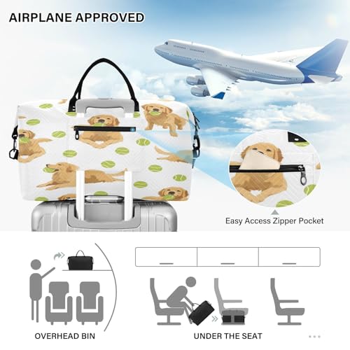 HOT ! Travel Duffle Bag Weekender Bags Overnight Bag with Toiletry Bag Gym Duffel Bag Golden Retriever Tennis Ball for Travel Business Trips Sport