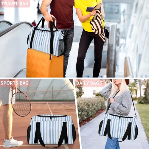 Stripes Blue White Watercolor Travel Duffel Bag Weekender Overnight Bags for Women Men Foldable Waterproof Tote Bag with Trolley Sleeve 6