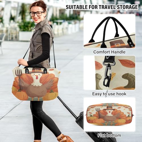 Thanksgiving Turkey Pumpkin Leaves Travel Duffel Bag for Men Women with Makeup Bag Weekend Overnight Carry On Bags for Travel Yoga Gym 7