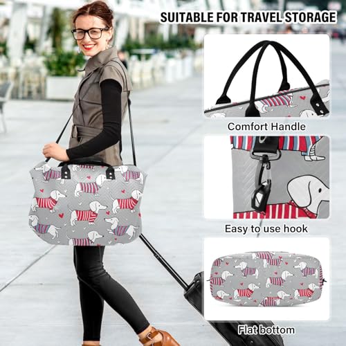 HOT ! Dachshund Dog Striped Heart Large Travel Duffle Bag Weekender Overnight Bags Gym Yoga Bag for Women Men with Toiletry Bag