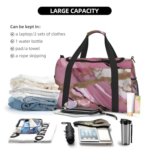 • Measuring an impressive 50x33x26 cm (19.7x13x10.2 inches), this Pink White Marble Pattern Print travel duffle bag offers ample space to accommodate all your essentials from clothing and electronics to personal items. for weekend getaways, business trips, or daily use.