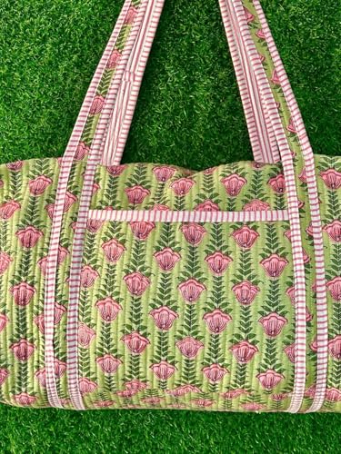 Large Cotton Weekender Travel Bag, Handmade Quilted Fabric Duffle Bag, Block Printed Overnight Bags, Hand Luggage Bag, Bags for Women, (20x10x10") 5