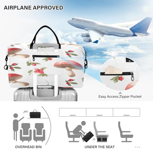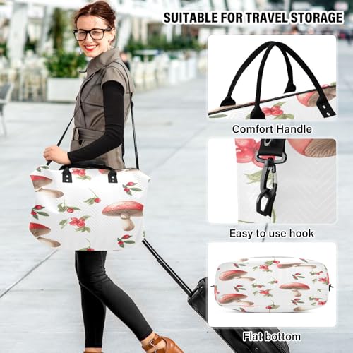 HOT ! Large Foldable Travel Duffel Bag, Waterproof Gym Bag for Men & Women, Carry-On Luggage Weekender Overnight Bag, Mushrooms Red Berries