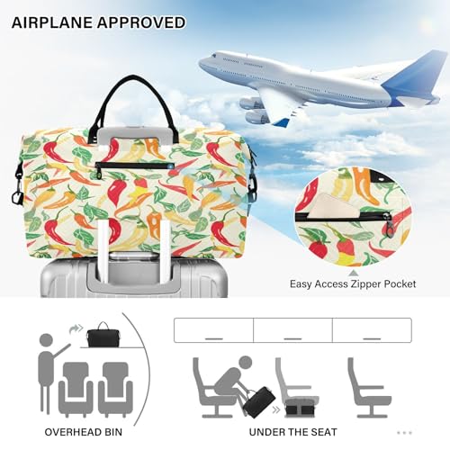 HOT ! Large Foldable Travel Duffel Bag, Waterproof Gym Bag for Men & Women, Carry-On Luggage Weekender Overnight Bag, Red Chili Peppers