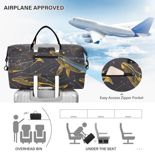 Large Travel Duffel Bag Sports Tote Gym Bag Overnight Weekender Bags Line Whale Carry On Luggage with Toiletry Bags 4