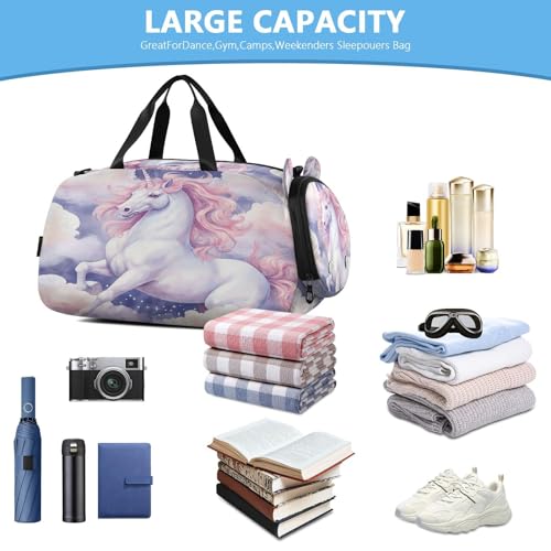 YETTASBIN Sport Travel Duffel Bag for Girls Boys, Cute Animal Large Waterproof Weekender Overnight Bag, Detachable Shoulder Strap Gym Bag with Shoe Compartment & Wet Pocket 5