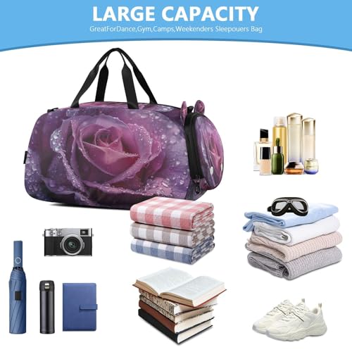 YETTASBIN Sport Travel Duffel Bag for Girls Boys, Rose Large Waterproof Weekender Overnight Bag, Detachable Shoulder Strap Gym Bag with Shoe Compartment & Wet Pocket 4