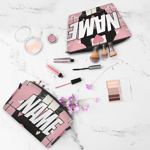 Custom Heart Shape Travel Duffle Bags for Women Weekender Overnight Black Pink Carry on Tote for Airplanes Business Hospital Gym with Toiletry Bag 3Pcs Set 5
