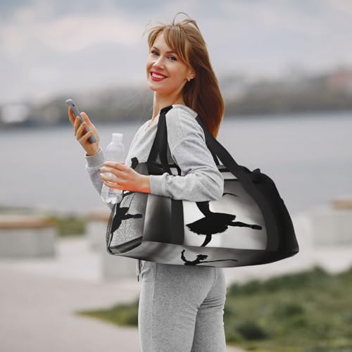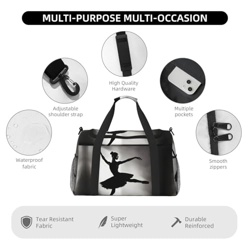 • Scene Shifter: Ballerina Dance print Travel Bag shifts gears from being a flight-friendly travel essential to a versatile bag for weekend outings and sporting escapades. It blends functionality and style, making it suitable for various scenarios, from airport terminals to hiking trails.