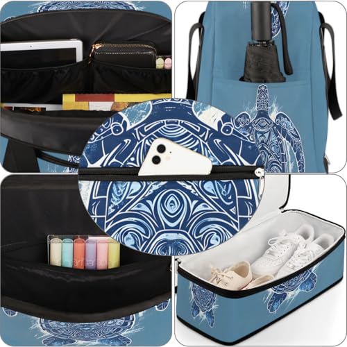 Travel Duffel Bags Bohemia Turtles Foldable Weekender Bags for Women with Shoes Compartment Waterproof & Tear Resistant Carry on Overnight Luggage Duffel Bag Shoulder Sports Tote Bag 6