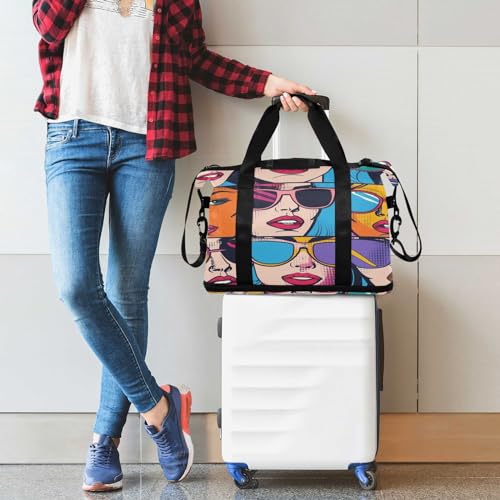 Women Girl Graffiti Travel Duffel Bag Waterproof Gym Sport Tote Bag Carry On Weekender Bag with Compartment 6