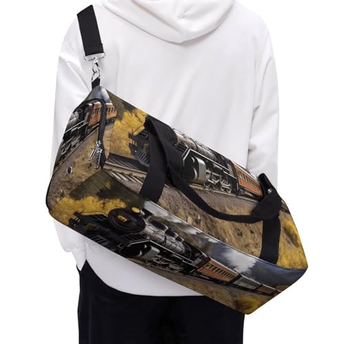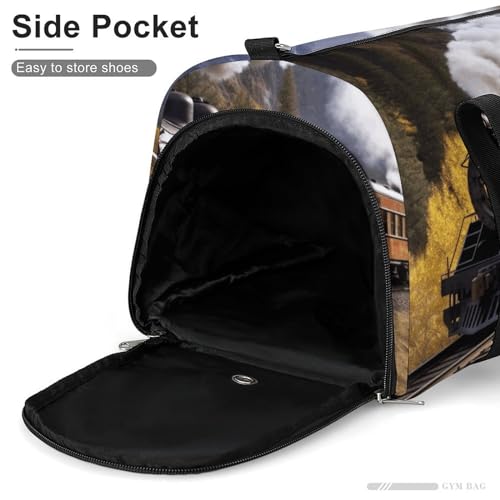 HOT ! Travel Gym Duffle Bag, Steam Locomotive Train Print Duffle Bags,womens Mens Gym Bag,gym Bags,gym Bag with Shoe Compartment