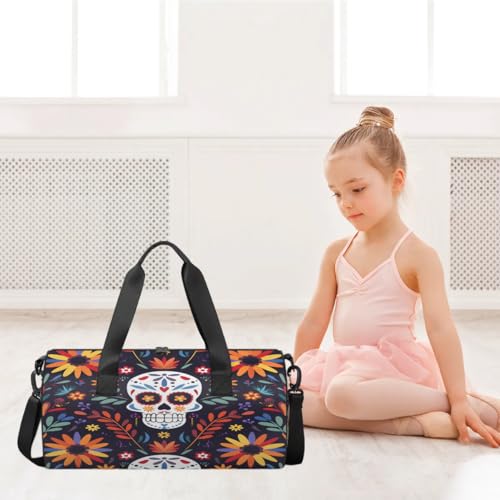 Skull Flower Leaf Travel Gym Bag Waterproof Sport Dance Bag for Women Men Portable Gymnastics Duffel Bags Canvas Tote Carry on Handbag for Workout Overnight Weekender 7
