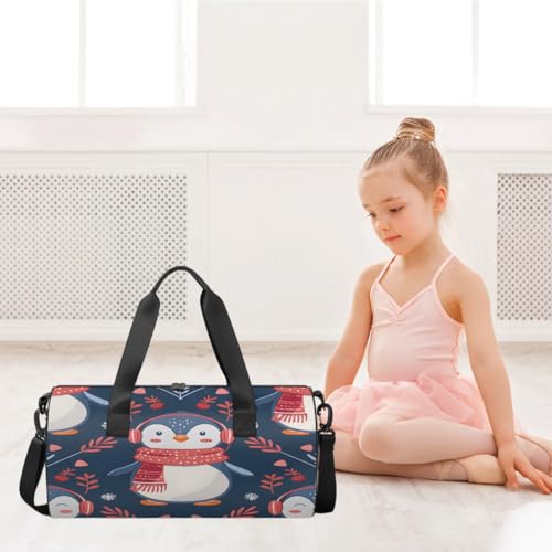 Penguin Scarf Travel Gym Bag Waterproof Sport Dance Bag for Women Men Portable Gymnastics Duffel Bags Canvas Tote Carry on Handbag for Workout Overnight Weekender 7
