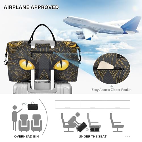 More information about Large Travel Duffel Bag, Black Cat Yellow Eye Sports Tote Gym Bag, Shoulder Weekender Overnight Bag for Women Men, Carry On Luggage with Toiletry Bags