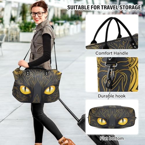 HOT ! Large Travel Duffel Bag, Black Cat Yellow Eye Sports Tote Gym Bag, Shoulder Weekender Overnight Bag for Women Men, Carry On Luggage with Toiletry Bags
