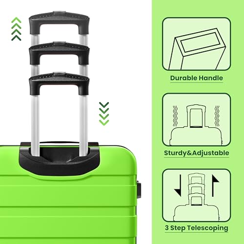 AnyZip Luggage Sets 3 Piece Hardshell Suitcase Set PC ABS Lightweight Travel Suitcases with 4 Double Spinner Wheels TSA Lock 20 24 28 Inch Apple Green 3