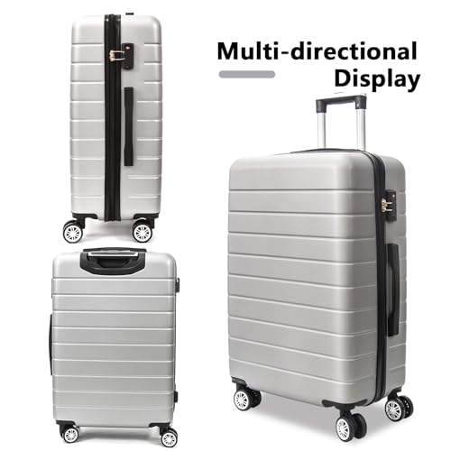 VANELC 3-Piece Luggage Sets Travel Lightweight Suitcases with Rolling Wheels,TSA lock & ABS Hard Shell,Carry on Luggages for Business, Trip, (20/24/28) (Silver Grey, 3PCS) 3