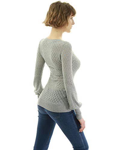 HOT ! AmélieBoutik Women V Neck Semi Sheer Bishop Sleeve Sweater