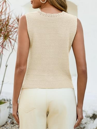Saodimallsu Womens Sleeveless V Neck Sweater Vest Cropped Button Down Crochet Casual Loose Knit Summer Going Out Tops 2