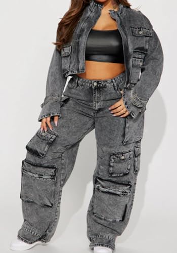 HOT ! Cargo Jeans for Women Y2K High Waisted Baggy Jeans Straight Wide Leg Cargo Pants Streetwear