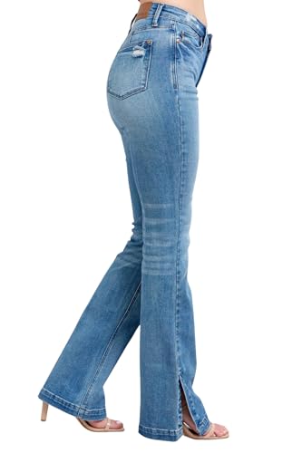• THE PERFECT JEAN: Ladies...Get your butt into the new trend! Judy Blue High High Waist Tummy Control Vintage Wash Side Slit Bootcut jeans is slim fitting through the waist, hip, and butt with a slim fitting flared leg.
