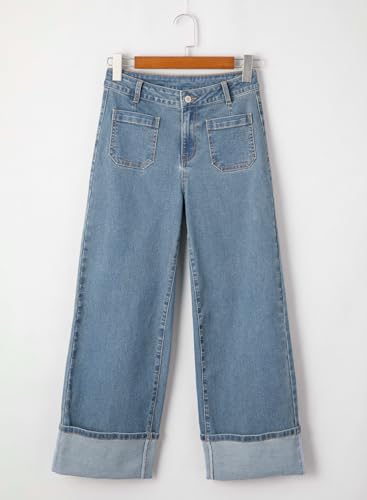 EVALESS Womens Jeans High Waisted Stretchy Cuffed Wide Leg Denim Pants with Pockets 6