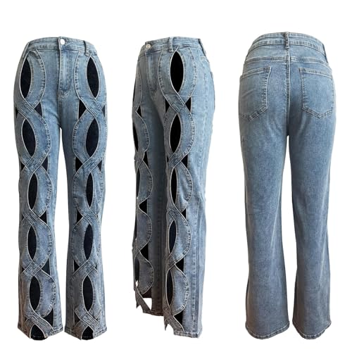 • Feature: Sexy jeans for women, cut out jeans, baggy jeans, y2k jeans, trendy jeans, stretch jeans, high waisted, straight wide leg, relaxed fit, floor length, denim pants with criss cross hollow out appearance makes your going out oufits more chic