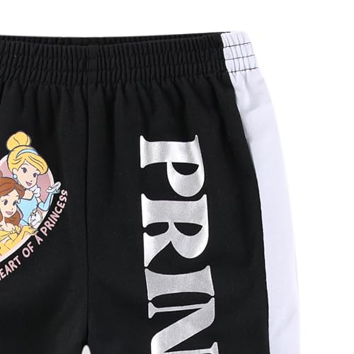• Contains one allover print pants with Belle, Rapunzel, and Cinderella, and one black pants with Princess print and graphics. Both pants have cuffed legs for added comfort and style.