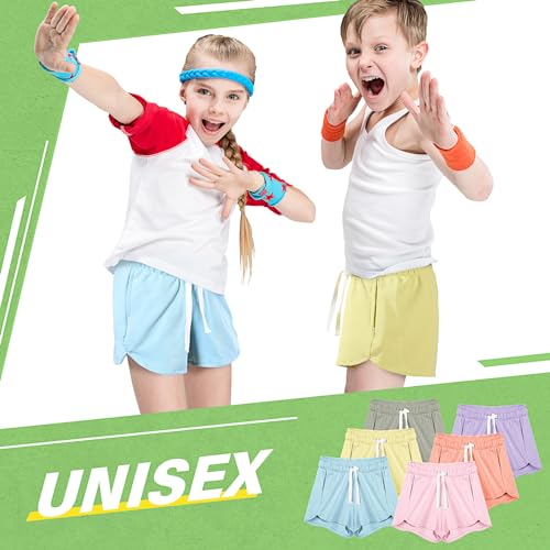 Boyiee 6 Pcs Girls Athletic Running Shorts Gym Workout Shorts with Pocket Drawstring Activewear for Kids Soccer Basketball 7