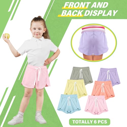 Boyiee 6 Pcs Girls Athletic Running Shorts Gym Workout Shorts with Pocket Drawstring Activewear for Kids Soccer Basketball 6