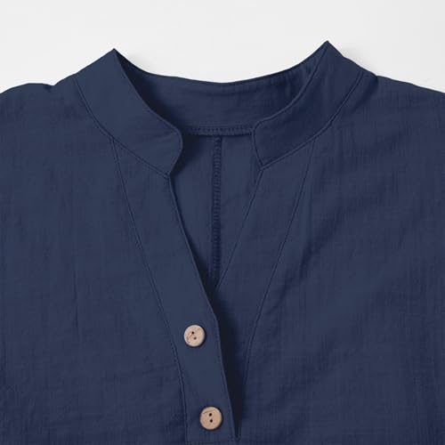 Girls Cotton Linen Shirts Short Sleeve V Neck Tunic Casual Linen Blouse Cute Summer Tops for Girls School Uniform Shirts 7