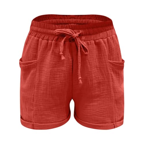 HOT ! Girls Tie Front Linen Shorts with Pockets Casual Cotton Elastic Waist Shorts with Drawstring Trendy Summer Beach