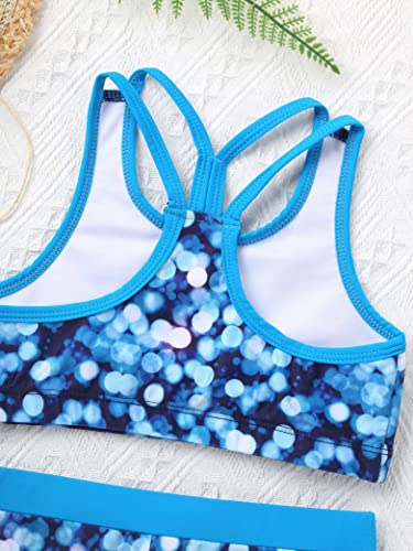Kids Girls 2 Piece Sports Gymnastics Dance Outfits Crop Tank Top with Booty Shorts Active Workout Sets Cerulean 6 Years 3