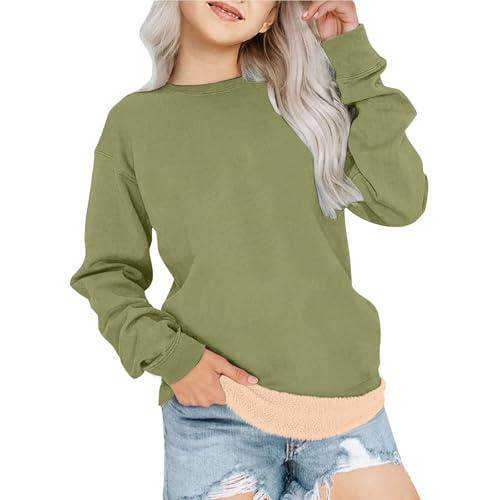 Kids Crewneck Sweatshirt Girls Oversized Fleece Drop Shoulder Cute Pullover Tops Warm Sherpa Lined Sweatshirts 2025 2